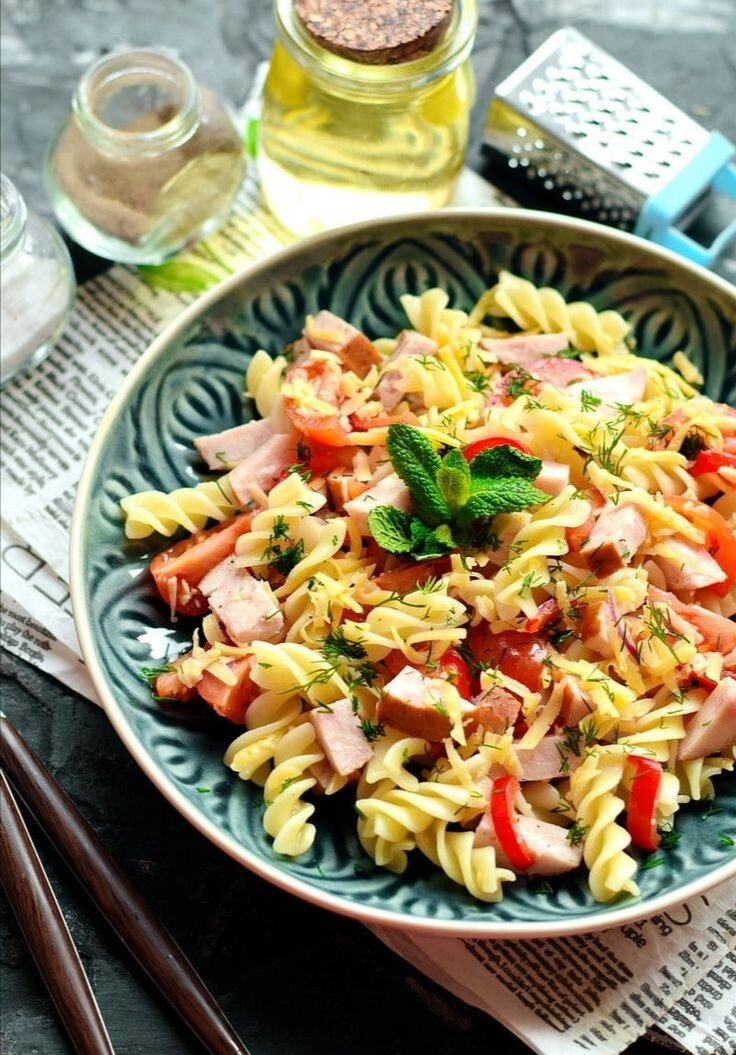 Итальянский салат с макаронами и ветчиной. Домашние были в шоке!