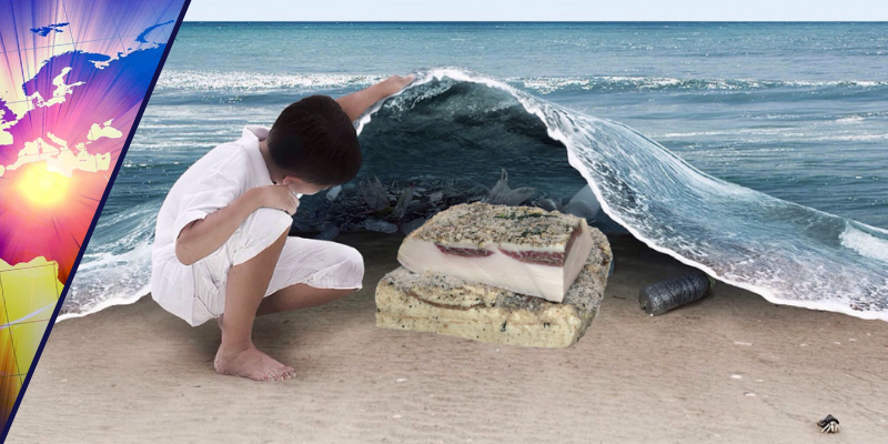 Жители шотландского городка Сейнт-Сайрус могут не бояться наступления голодных времен: море обеспечивает их не только рыбой, кальмарами и креветками, но и свининой. Уже несколько десятилетий штормовые волны выбрасывают на берег огромные куски настоящего солёного сала. В последний раз водная бездна прибила к берегу приморского заповедника четыре добротных бочкообразных шмотка животного шпика. Правда, такому щедрому подарку обрадовались только птицы и собаки, ибо, предположительно, этой морской свинине уже более 70 лет, да и похожа она, скорее, на яйца динозавра, чем на привычное сало. Местные жители рассказывают, что этот добротный презент выплывает с британского торгового судна, которое было затоплено во время Второй мировой войны немецкой авиацией. Тогда-то обитатели Сейнт-Сайруса и начали находить первые «морские подарки». В голодные годы такой гостинец воспринимался как дар Божий. В те времена сало причаливало к берегу в бочках, какие-то куски, правда, вываливались наружу. Но голода