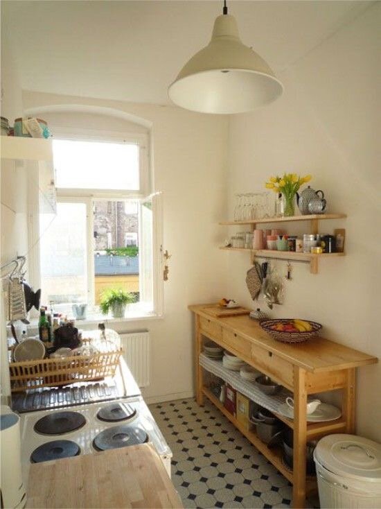 Из-за того, что так много света кажется, что кухня не такая уж маленькая, как есть на самом деле.