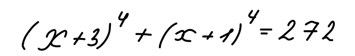Уравнение 4-ой степени с ним решается просто и играючи. Итак, имеем следующее уравнение: Как к нему подступиться? Сразу пытаться выделять полный квадрат? Может быть и получится, но не хочется. Раскрывать скобки? Видно, что ничего не сократится, т.к. в скобках одни "+". Даже если потом пытаться подобрать целые корни у получившегося многочлена, не факт. что это приведет к успеху. К счастью есть особый метод решения таких уравнений - метод симметризации. Он заключается в специальной подстановке, которая призвана в нашем случае сократить члены с нечетными степенями и свести уравнение к биквадратному. Итак: Осуществляем очевидную подстановку и преобразовываем уравнение. С вашего позволения не стал расписывать, а указал лишь конечный результат: Такие уравнения решать не только просто, но и приятно, особенно когда как бальзам на душу получается извлекаемый дискриминант, правда же? На самом деле это далеко не единственный способ симметризации уравнений высших степеней. Например, один из них я