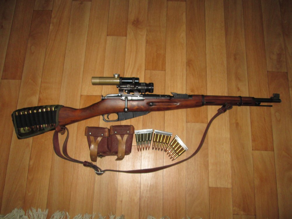 Из карабина также можно стрелять по некрупным животным патронами военного образца, как правило, с полностью оболочечной пулей. Различную окраску пуль имеют патроны военного образца, это зависит от их конструкции. Следует знать отличительную окраску патронов, для того, чтобы не применить их случайно на охоте с зажигательными, а также разрывными пулями. Патроны, которые имеют пули с серебристой окраской вершинки, применять можно на охоте, поскольку состоят данные пули из стальной и плакированной томпаком оболочки, стального сердечника и свинцовой рубашки. Масса данной пули 9,6 г. А легкая пуля 1908 г. образца отличительной окраски не имеет и состоит из плакированной томпаком, стальной оболочки, а также сердечника, который состоит из свинца с добавлением сурьмы. В меньшей степени такая пуля снашивает в канале ствола нарезы, чем предыдущая, которая со стальным сердечником. Пуля желтой окраски имеет большую массу (11,8 г), а также несколько иную форму. Такую пулю называют, как правило, тяжелой пулей 1930 г. образца; конструктивно не отличается она от пули 1908 г образца.