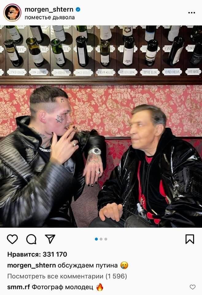 Опубликовал у себя фото из Инсты: Моргенштерн + Невзоров,,, Рэппер написал, что, мол, про Путина у них шла речь,,, А в комментах на это никто не повелся, президента не помянули ни разу, все реплики лишь в адрес этих двоих: Смотрю-слушаю Невзорова каждую неделю. Восхищаюсь его стилем. Как он изящно работает со словом, как он мастерски ставит диагнозы обществу, в каких формулировках. Если бы вот на месте Красовского был бы Невзоров, то вместо тупого "мочить в Фонтанке", Алексанр Глебович подобрал бы такие слова и привел бы такие сравнения, что в этой стране было бы стыдно быть оппозицией. На ней стоял бы такой медиаярлык, что ничем не отмоешь. Поэтому какое счастье, что Невзоров не с той стороны. А у Моргенштерна, к слову, есть годны трек - Я съел деда. Необычный и концептуальный. Но главное за что ценю, Незворов и Моргенштерен - это тест на содержание ваты в коре головного мозга. ***** Один из них отрыжка прошлого, времен смуты, когда в этой не чести он чувствовал себя как рыба в воде,