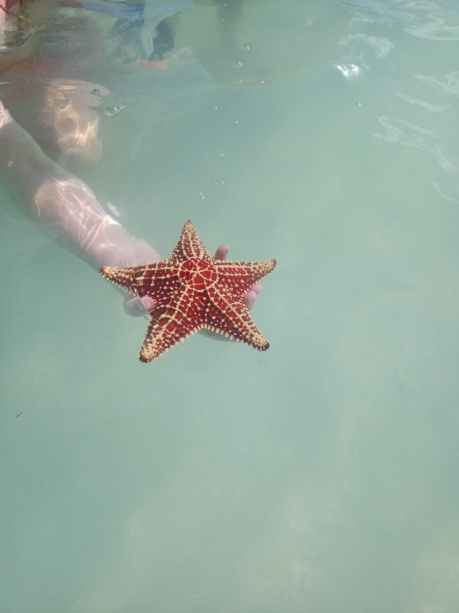 Коралки с собой не брал, а на месте купить маловероятно. Но мне они и не понадобились, хотя пару раз пятку поцарапал о кораллы , но не критично. Обзор недавнего моего отдыха в отеле Меморес Фламенко Бич 5* Что касается морской живности, то не рассчитывайте, как на Красном море не будет. За почти две недели отдыха, повезло увидеть около берега двух скатов, одного небольшого, даже фото не стал делать. А за другим(приличного размера, более метра в диаметре), весь пляж бегал: Рядом с берегом можно увидеть небольших рыбок (один раз плавала метровая барракуда) и больших синих крабов, которые выходят погулять по пляжу: Иногда, они(крабы) приходят по ночам в гости к туристам, которые живут на первых этажах, так что будьте готовы: С морскими звездами совсем плохо. Можно найти только на глубине, у коралловых рифов. Пару раз запечатлел удачную находку у удачливых туристов: Зато с морскими ежами, кроме одного случая, не встретился. Случайно обнаружил выброшенного на берег, уже совсем высохшего