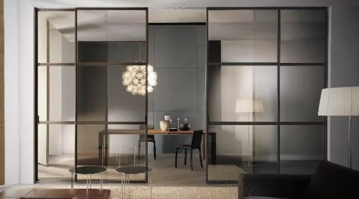 Раздвижные двери незаменимы, когда в квартире мало места. Дверное полотно (полотна) устанавливаются на специальные ролики и двигаются параллельно стене.