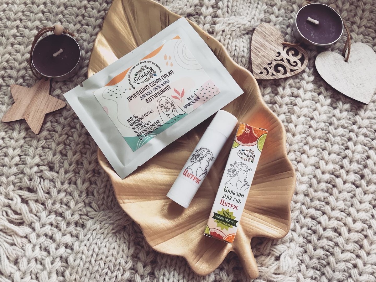 С утра я приучила себя делать маску для лица! Это помогает быстро взбодриться и подготовить кожу к макияжу! А так же готовлю и губы, без гигиенической помады никуда! У бренда «ЭКО Скифия» я нашла отличную парочку! Природная сухая маска для лица «Витаминная» для всех типов кожи - сашетка, с порошкообразной консистенции без запаха - необходимо развести продукт, в соотношение 1:2 чайных ложек, дать настояться и нанести на лицо, смыть тёплой водой - оказывает антиоксидантное действие, избавляет от сухости, предотвращает появление мелких морщин, витаминизирует, улучшает цвет лица - не застывает на лице, но дополнительно проходу гидропланом - после использования кожа бархатная и сияющая - одного пакетика мне хватило на три применения - натуральный состав, ручная работа - не вызывает аллергии, раздражений и высыпаний Объём 15 гр Бальзам для губ на основе пчелиного воска «Цитрус» - стик, с твердым основанием, желтого цвета и запахом цитрусов - таяющая текстура, питает кожу губ и устраняет