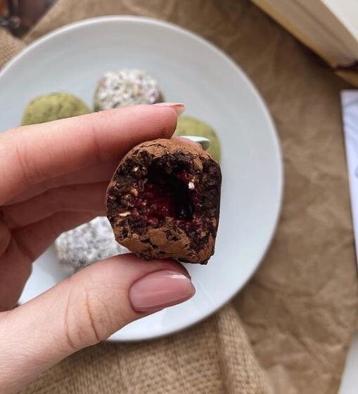ПОЛЕЗНЫЕ КОНФЕТЫ Я не думала, что они получатся такими вкусными! Однозначно буду делать чаще. Ведь это очень крутая и не менее вкусная альтернатива обычным конфеткам 😋 Ингредиенты: Начинка и украшения: Приготовление: 1. Все ингредиенты для конфеток закидываем в блендер и перемалываем. 2. Смачиваем руки водой и лепим такие конфетки. Если масса сильно липнет к рукам, добавьте ещё какао. Внутрь кладём вишенку без косточки или любую другую ягодку/орешек! 3. Обваливаем конфетки в какао/кокосовой стружке/матче. У меня вышло 8 шт! Пробовали подобные вкусняшки?