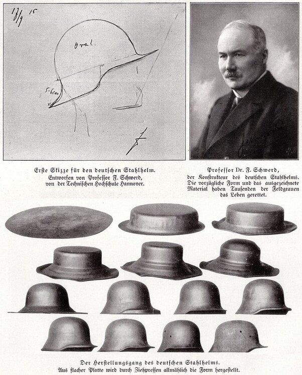 «Der Stahlhelm» или «Стальной шлем» был создан доктором Фридрихом Швердом. Это произошло потому, что Императорская немецкая армия начала заменять традиционную вареную кожу Пикельхаубе во время Первой мировой войны в 1916 году. Здесь, в Германии, есть музей, посвященный «Стальхельму». Прилагаю pdf-файл этого музея. Это на немецком языке. https://www.armeemuseum.de/images/publikationen/1984_stahlhelme.pdf M16 Stahlhelm. Эти два поднятых «рога», как в старом фильме о монстрах Франкенштейна, которые он держал на шее, называются ушки «Stirmpanzer». По одному с каждой стороны. Эти проушины предназначены для вентиляции. Он также использовался для часовых, чтобы добавить стальную надбровную пластину под названием «Stirmpanzer». Стальная надбровная пластина 'Stirmpanzer'. PS. Дорогой читатель, если тебе понравилась статья подпишись и поставь палец в верх. Спасибо.