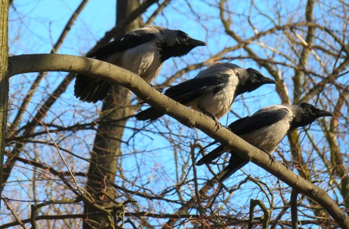 Сегодня утром иду на работу, а ворона-то меня и мой средний палец не забыла. Подхожу к тому самому дереву, гляжу — ворона уже с группой поддержки — еще одной птицей — муж, наверное, срываются с дерева и с жутким карканьем давай надо мной кружить. Мне стало даже не по себе: известное дело, что вороны так специально врагов запугивают, а могут и напасть. Я ускорил шаг, а они, чуть ли не целый квартал за мной летели и орали, потом, правда, отстали. Так что, можете меня поздравить — я нажил себе врагов на районе — двух наглых ЧТЗовских ворон. Не показываете им средний палец, чревато.