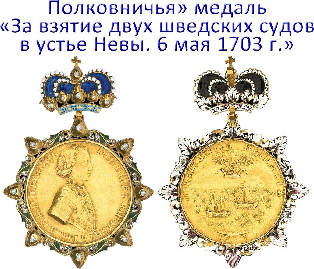 «Полковничья» медаль «За взятие двух шведских судов в устье Невы. 6 мая 1703 г.»