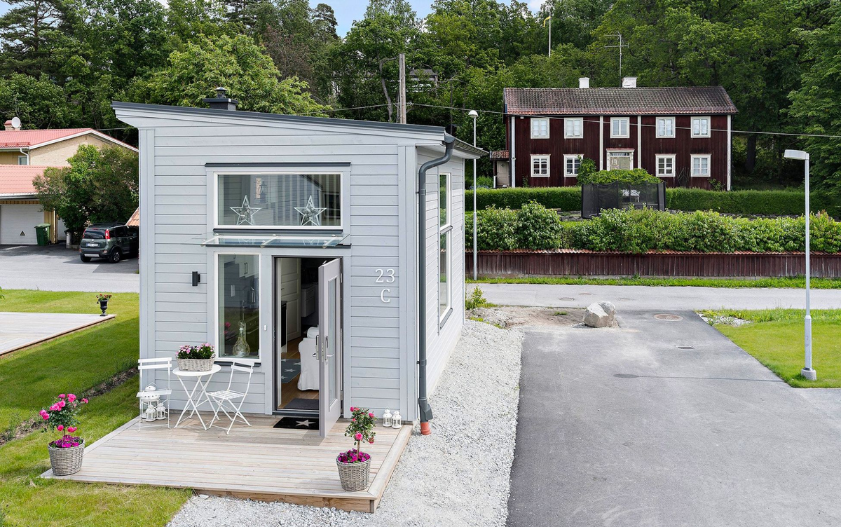 Один наш читатель, устав жить в тесной квартире, купил участок за городом и потратил несколько лет, чтобы построить дом своей мечты — красивый и, главное, просторный. Теперь, когда ему нужно позвать кого-то из членов семьи, он звонит им по телефону (чтобы не тратить времени на поиски, бегая по комнатам). Но завидовать ему не стоит. Как выяснилось на практике, дом его мечты требует много сил и времени на уборку и обслуживание, так что наслаждаться жизнью загородом просто некогда. Похожий проект: Маленькая дача 15 м²: лофт со спальней, душ на свежем воздухе, терраса с купелью А вот шведы, напротив, предпочитают компактные дома. Можно даже сказать, что крошечные домики стали современным скандинавским трендом. Дело в том, что по правилам многих садовых товариществ в Швеции на участке нельзя возводить большие постройки. Поэтому типичное шведское жилище — это крохотный коттедж, невысокий забор, ровно подстриженные кусты, ухоженный газон и аккуратные грядки. Яркий пример современной скандинав