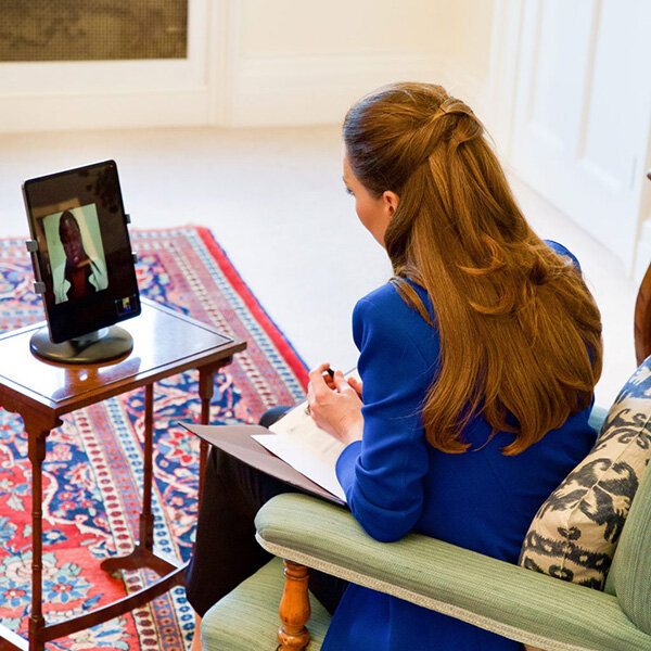Герцогиня Кембриджская появилась на нескольких новых фотографиях в среду, когда она разговаривала с медсестрой-акушеркой Харриет Найига по случаю Международного дня акушерки. Часто мы видим Кейт с распущенными волосами, уложенными крупными волнами. В этот раз, волосы были собраны таким образом: На фото, сделанной сзади, хорошо можно рассмотреть, как прическа выполнена. Точно используются невидимки в цвет волос и кажется, что повторить несложно. Многие фанаты написали, что попробуют подобным образом уложить волосы себе или своим дочкам. Конечно, волосы Кейт красивы и очень ухожены. Известно, что Аманда Такер, которая создает многие прически герцогини, использует специальный бальзам для кудрявых волос - он помогает снять "пушистость" и делает волосы более гладкими и блестящими. А закрепляет она всё лаком для волос L'Oréal Elnett. Ой, думаю теперь в магазине его просто так не купишь! У нас стоимость стартует от 860 рублей за флакон 500 мл. Кейт была в ярком синем блейзере Zara во время