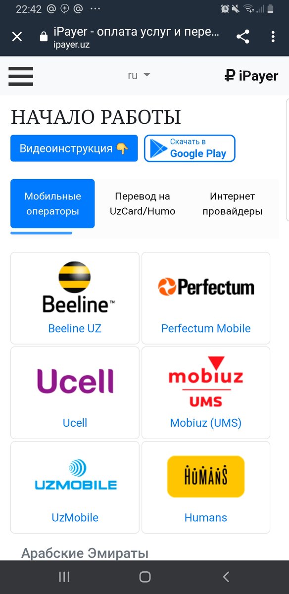 1. iPayer ilovasiga kiramiz yoki qurilma internet browseri ilovasi orqali ipayer.uz saytiga kiramiz; 1. Войдите в приложение iPayer или зайдите на сайт ipayer.uz через приложение интернет-браузера устройства; 2. To'lov qilishimiz kerak bo'lgan xizmatni tanlaymiz, masalan Ucell uyali a'loqa kompaniyasi abonentiga to'lov qilmoqchimiz. Ucell ni tanlaymiz; 2. Выбираем услугу, которую нам нужно оплатить, например, мы хотим заплатить абоненту мобильной связи Ucell. Выбираем Ucell 3. Keyingi oynaning birinchi qatoriga to'lov qabul qiluvchi telefon raqami, ikkinchi qatoriga esa to'lov summasini kiriting, to'lov miqdori O'zbekiston so'm pul birligi hisobida kiritilishi kerak. Pastdagi na'muna rasmga qarang; 3. В первой строке следующего окна введите номер телефона получателя, а во второй строке введите сумму платежа, сумма платежа должна быть введена в узбекских сумах. Посмотрите образец изображения ниже 4. Yuqoridagi rasmda ko'rsatilganday to'ldirib bo'lgach, yashil tugmachani bosamiz; 4