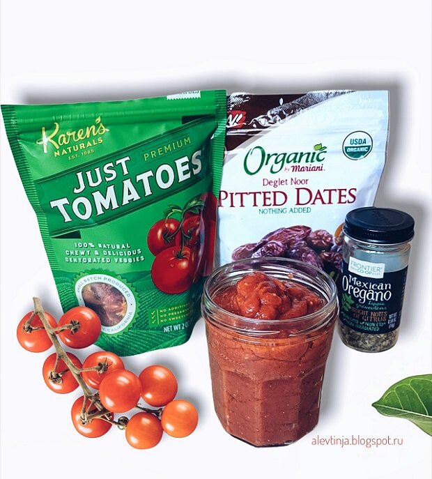 Это не совсем кетчуп в привычном понимании, ведь он не содержит сахара, уксуса и соли. Такой соус идеально подходит к запеченному картофелю. Это базовый рецепт, который можно модифицировать под свои вкусы. Традиционно даю наводку на ингредиенты, которые я использую. Я делаю небольшую порцию, на 1-2 раза. Соус не содержит консервантов, поэтому лучше съесть его сразу, пользы будет больше. СОСТАВ Сушеные помидоры - 6-7 штучек Свежие помидоры - 2 крупных или веточка черри (их должно быть в 2-3 раза больше, чем обычных) Финики без косточек - 3 штуки Сушеный орегано - 1 ч.л. * можете добавить чеснок, тимьян или другие любимые травы. Если уж совсем невмоготу, слегка посолите. ПРИГОТОВЛЕНИЕ Все ингредиенты пробить блендером, переложить в стеклянную банку. Можно хранить в холодильнике пару дней. Пару слов о пользе помидоров. Помидоры содержат свой особый вид витамина С, который является биодоступным для лимфатической системы и печени. Также они поддерживают иммунную систему, чтобы она ост