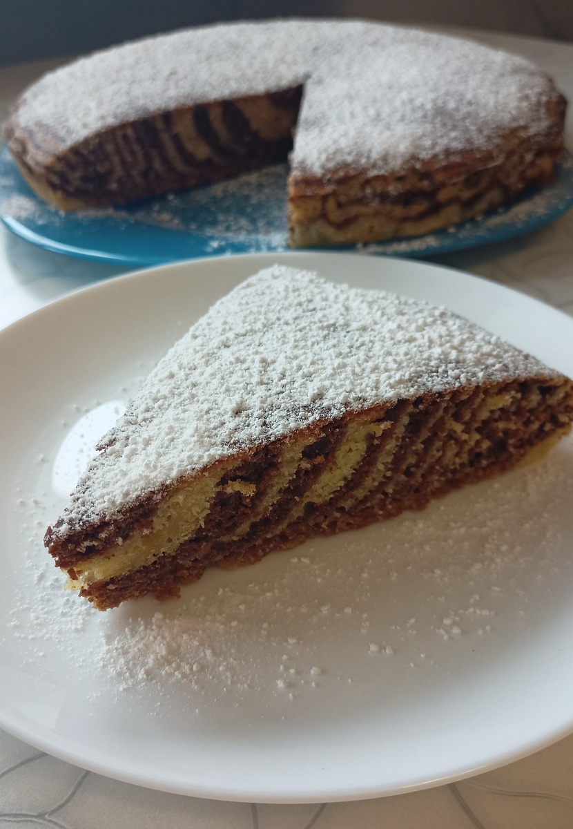 Ингредиенты ⬇️на 6 порций Кефир - 250 мл Яйца - 2 шт. Сахар - 200 г Крупа манная - 160 г Мука - 130 г (1 стакан ёмкостью 200 мл) Сода 1 ч.ложка Уксус Какао-порошок - 20 г Приготовление ⬇️ Подготовьте необходимые ингредиенты. Кефир нужен комнатной температуры - достаньте его из холодильника заранее. В глубокой миске соедините манную крупу и 250 мл кефира комнатной температуры. Перемешайте манку с кефиром и оставьте на 30 минут на кухонном столе, чтобы манка разбухла. Минут через 25 после замачивания манки в отдельной миске соедините яйца и сахар. Миксером на высокой скорости взбивайте яйца с сахаром около 3-х минут, до получения светлой пышной массы. Манка разбухла. Погасите соду уксусом и добавьте в манно- куфирную смесь. Переложите манку в яично-сахарную смесь. Перемешайте. Включите духовку для разогрева до 180 градусов. Муку просейте в миску с манно-яичной смесью. Миксером на медленной скорости перемешайте ингредиенты до получения однородного теста. Разделите тесто на две прим