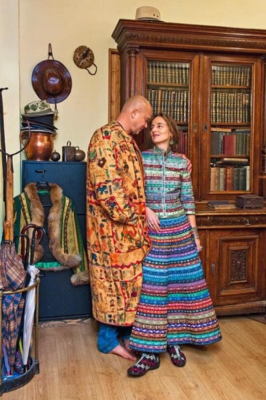 Популярный актер Андрей Смоляков и его супруга Дарья Разумихина приобрели дом, построенный до революции на Старой Басманной улице в Москве. Строение привлекло продуманной планировкой, широкими и длинными коридорами. Как в большинстве старинных домов, есть парадный и черный входы. Супруги не только здесь проживают, но и творческую мастерскую Дарьи оборудовали. Женщина не любит однообразия, часто меняет квартирные экспозиции. В доме сочетаются разнообразные стили и материалы. Так для пола выбрали натуральный паркет, для стен – обычные обои. Для украшения интерьера хозяева взяли ткани и дерево. А вот мебель, в большинстве своем, из Икеи. Гостиная Смолякова больше напоминает музей. Вдоль стены установлены стеллажи, где хранятся яркие ткани, головные уборы, необычные украшения. На противоположной стене размещены еще более оригинальные вещи: индейская вышивка из Центральной Америки, старинные китайские украшения. Дело в том, что Андрей и Дарья любят путешествовать, и обычно привозят из поезд