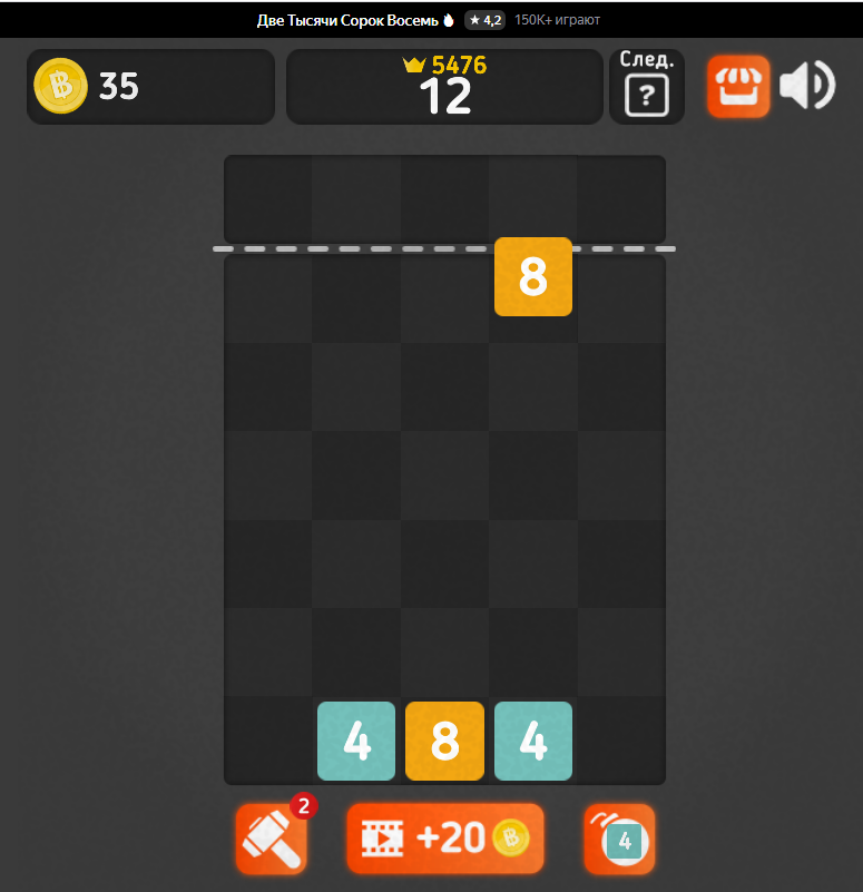 Суть игры в том, что кубики с одинаковой цифрой, укладываемые рядом, суммируются. Цель игры – получить плитку номиналом 2048, но можно продолжать и далее, ставить личные рекорды.