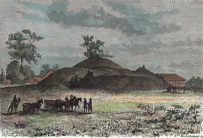 В процессе раскопок, проведённых им в 1872-1873 годах, был исследован огромный курган с периметром основания 125 м и высотой 10 м, который в древности был обнесён глубоким рвом.