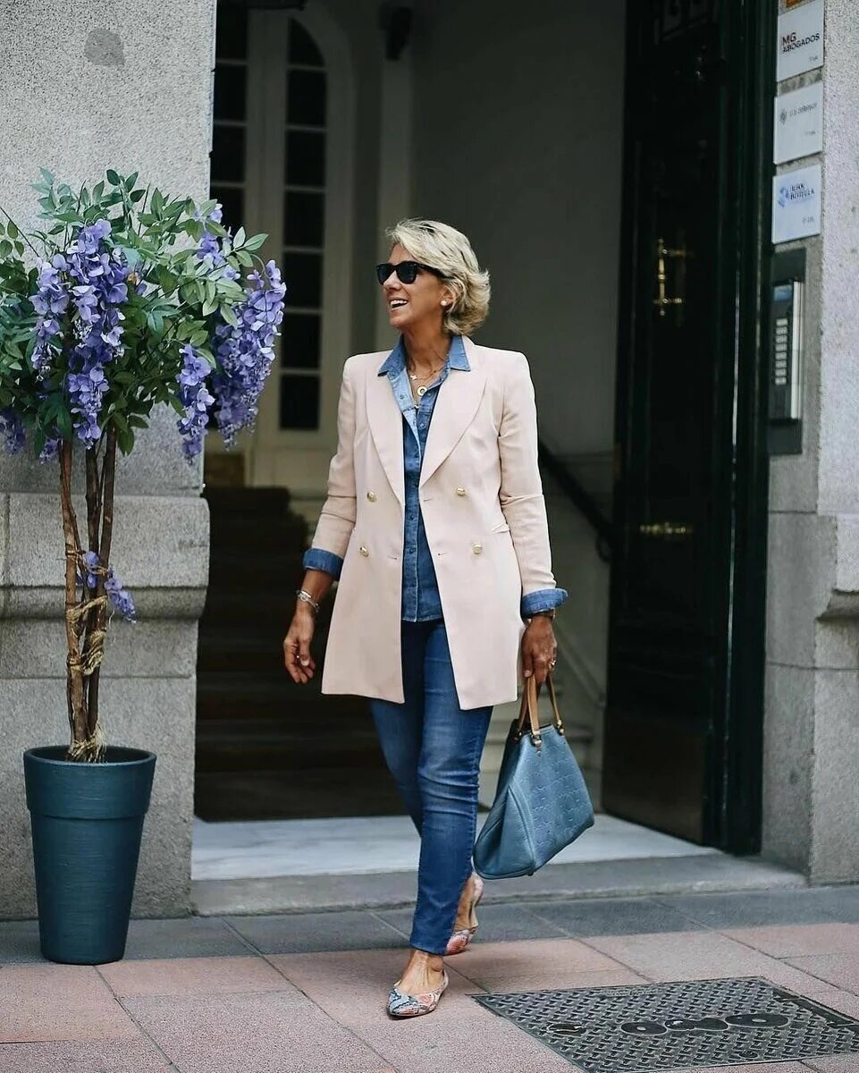 Наслаждаться модой можно в любом возрасте. Независимо от веса и количество морщинок на лице можно выглядеть стильно. И для этого не требуется тратить целое состояние. Советы известного стилиста Эвелины Хромченко помогут составить стильный и современный гардероб. Прямые джинсы синего цвета При составлении ансамблей с джинсами крайне сложно ошибиться, главное найти модель, которая хорошо сидит на фигуре. Обращайте внимание на посадку на бедрах и на ягодицах, а если пояс будет немного великоват – не страшно. Это можно исправить при помощи ремня, а еще лучше – обратиться в ателье, чтобы убрать лишнее. Для лета можно выбрать модель из тонкого «облегченного» денима. А вот вариант с прорехами все же лучше не брать. Хоть для лета такие джинсы и удобны, в возрасте 50+ такая модель выглядит несколько нелепо. Лучше отдать предпочтение стилю минимализм. Широкие легкие брюки Летом широкие брюки из легкой ткани чрезвычайно удобны. Даже в жару в них будет комфортно. Кроме того, такие брюки красиво ст