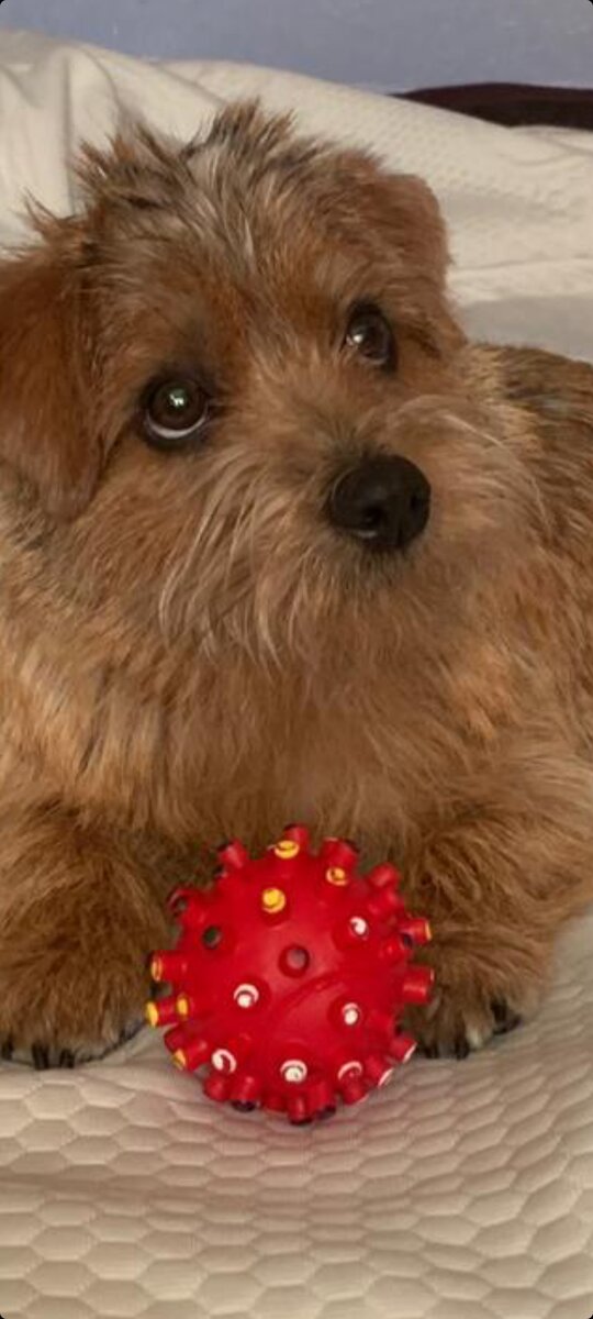 Ну, если коротко- то вот такой он- норфолк терьер. Небольшой, рыжий или черно- подпалый пёсик с жёсткой шерсткой и мягким сердцем. Неутомимый охотник и преданный компаньон.