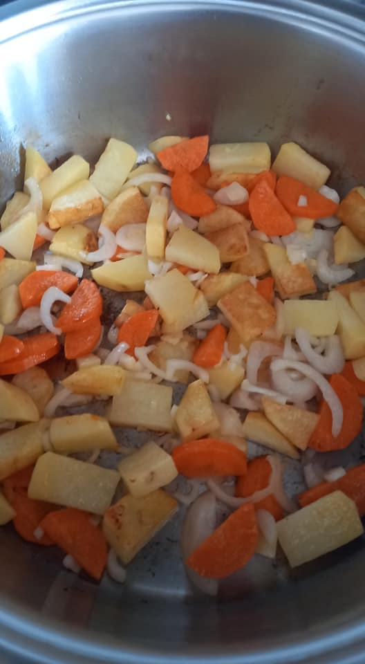 Их ещё называли ленивыми пельменями с курицей и готовили в Калининграде и Прибалтике. Суть проста. Делаем обычную поджарку из морковки, лука и картошки на смеси сливочного и постного масла. Перекладываем поджарку в кастрюлю. Замешиваем пельменное тесто, раскатываем его, нарезаем полоски 3-4 см шириной и выкладываем на полоски куриный фарш, хорошо проперченный и подсоленный. Сворачиваем рулетики, ставим их на поджарку и наливаем кипятка столько, чтоб он едва прикрывал штрули. Варим их минут 7-10. Подаём с йогуртом(сметаном, кефиром) и чесночком. Очень душевно и сытно.