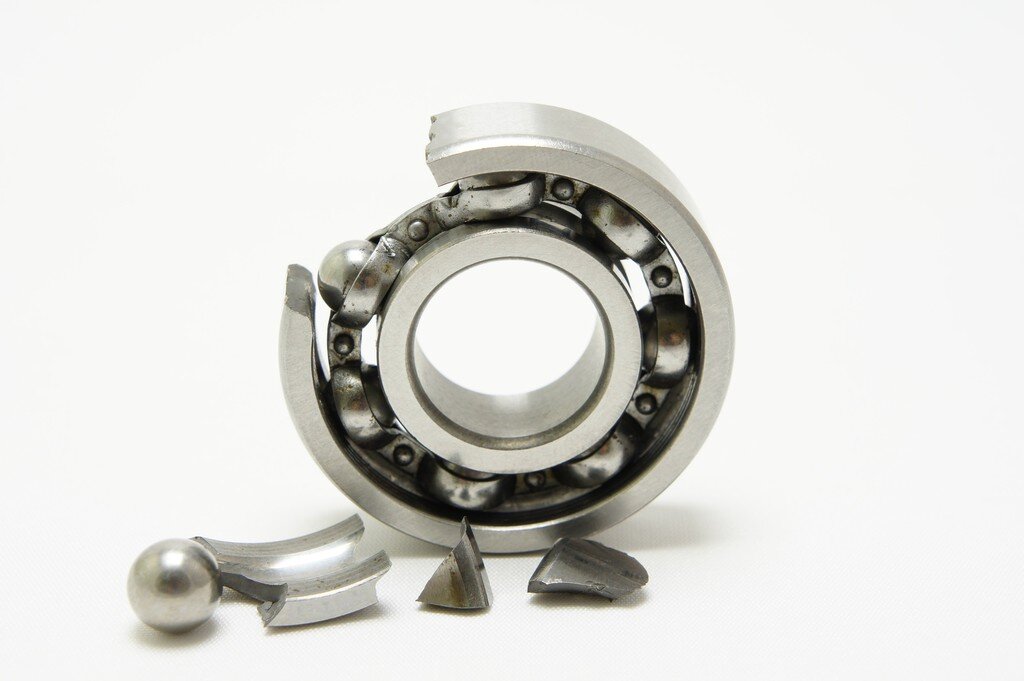 На выход из строя подшипников может влиять множество факторов, причем на качество материала и брак изготовления приходится менее 1%. Основная масса (55 %) связана со смазкой: · Устаревание смазки – 20 % · Недостаток смазки – 15 % · Неправильная смазка – 20% Следующими по процентному соотношению (25 %) причинами являются загрязнения жидкие (грязь) и твердые (пыль, стружка), а также неправильный выбор типа подшипника (10 %) и ошибки при монтаже (5 %). Основными повреждениями подшипника являются: · Коррозия · Перегрев · Перекос · Сколы · Следы проскальзывания · Трещины · Усталость металла · Загрязнения · Износ торцов роликов и бортов колец · Рифление 1. Коррозия Возникает при воздействии на подшипник агрессивных сред, прежде всего воды или влаги. Часто причинами коррозии может быть повреждение защитных уплотнений, недостаточность или некачественность смазки, простой резкий перепад температур, способствующий появлению конденсата. Признаками коррозии являются: · красные, коричневые, серые