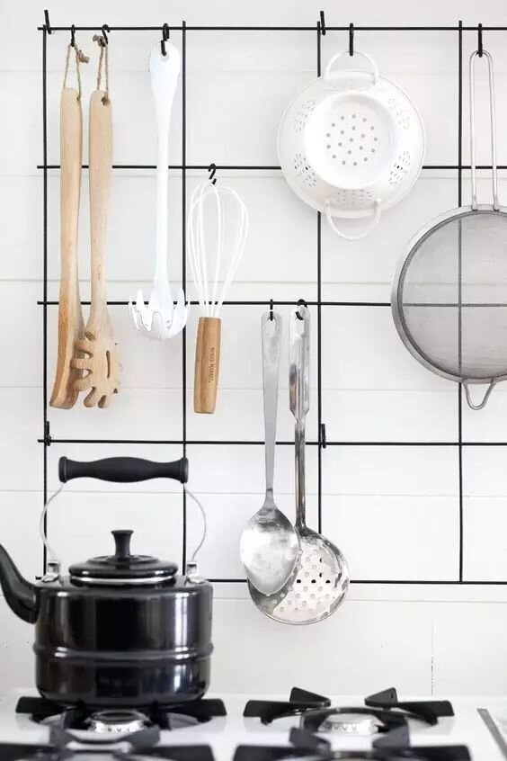 Не упустите свой шанс добавить крутые и недорогие элементы в ваше кухонное пространство. Для меня мечта о кухне - это больше функциональность, а не просто красота, но иногда эти два качества могут противоречить друг другу. Один из нужных элементов на кухне довольно прост - перила для посуды. Некоторые кухни имеют направляющие или крючки для удобного хранения посуды, их-то мы и будем использовать. Когда я впервые подумала о том, как реализовать видимое хранение посуды на своей кухне, я подумала, что могу прикрепить поручень к стене под верхней полкой и использовать S-образные крючки, чтобы повесить регулярно используемую посуду. Но у меня было такое большое открытое пространство на фартуке, которое требовалось заполнить, поэтому я решила вместо него сделать решетку - такую, в которой можно было бы разместить сковороды и фильтры, а также посуду. Мне нравится индустриальное / деревенское настроение, которое он добавляет к пространству, а также универсальность самой стойки. Я могу повеси