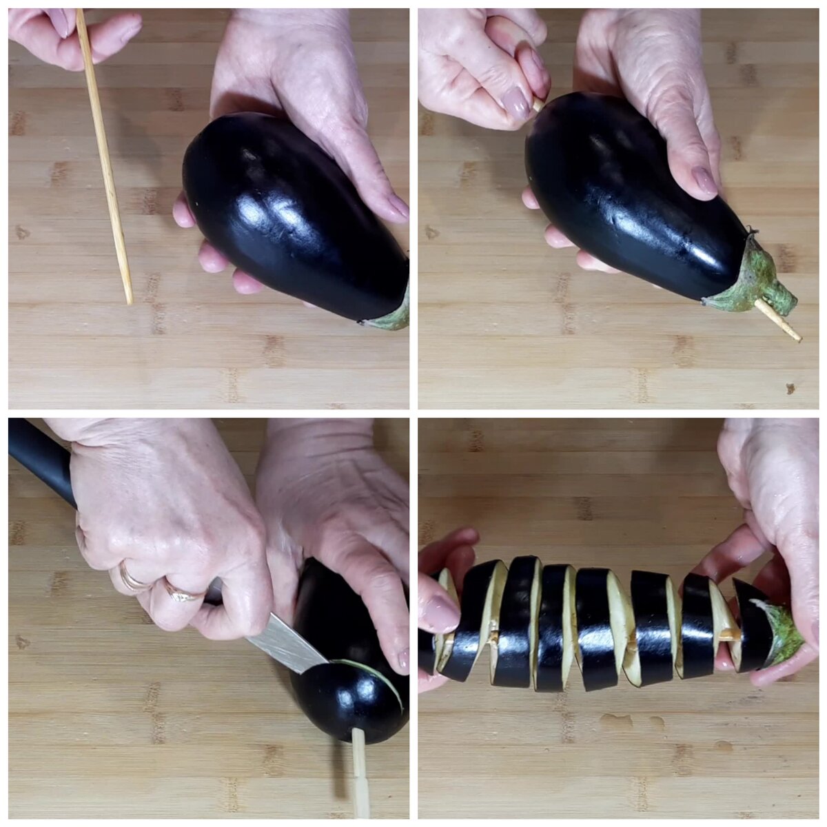 Здравствуйте, я рада приветствовать Вас на нашем канале. Сегодня решила поделиться с Вами рецептом запекания в духовке начинённых баклажан и картофеля с беконом и сыром. Количество баклажан и картофеля не ограничено. Берём баклажан протыкаем его палочкой от суши,надрезаем наискосок так, чтобы у нас получилась спираль. Аналогичным способом повторяем тоже самое с картофелем. В баклажаны по спирали укладываем бекон. Также укладываем бекон в картофель. Можно для разнообразия запечь в месте с баклажанами и картофелем помидоры. Для этого выбираем сердцевину у помидора и кладем туда бекон , сверху заливаем яйцом. Укладываем всё в форму для запекания. Солим и перчим по вкусу. Наливаем 50 миллилитров воды. И ставим в разогретую духовку до 200 градусов на 40 минут. Тем временем натираем на мелкой тёрке сыр. Через 40 минут открываем духовку и посыпаем баклажаны с картофелем и помидорами - сыром. И запекаем ещё пять минут. Смотрите какая получилась красота. А какой аромат стоит от запечённых ов