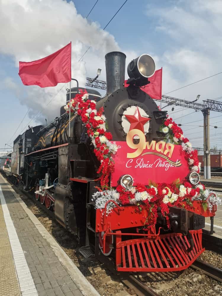 Сегодня 07.05.2021 в 10-20 с перрона Железнодорожного вокзала ст. Хабаровск-1 состоялось торжественное отправление ретро-поезда