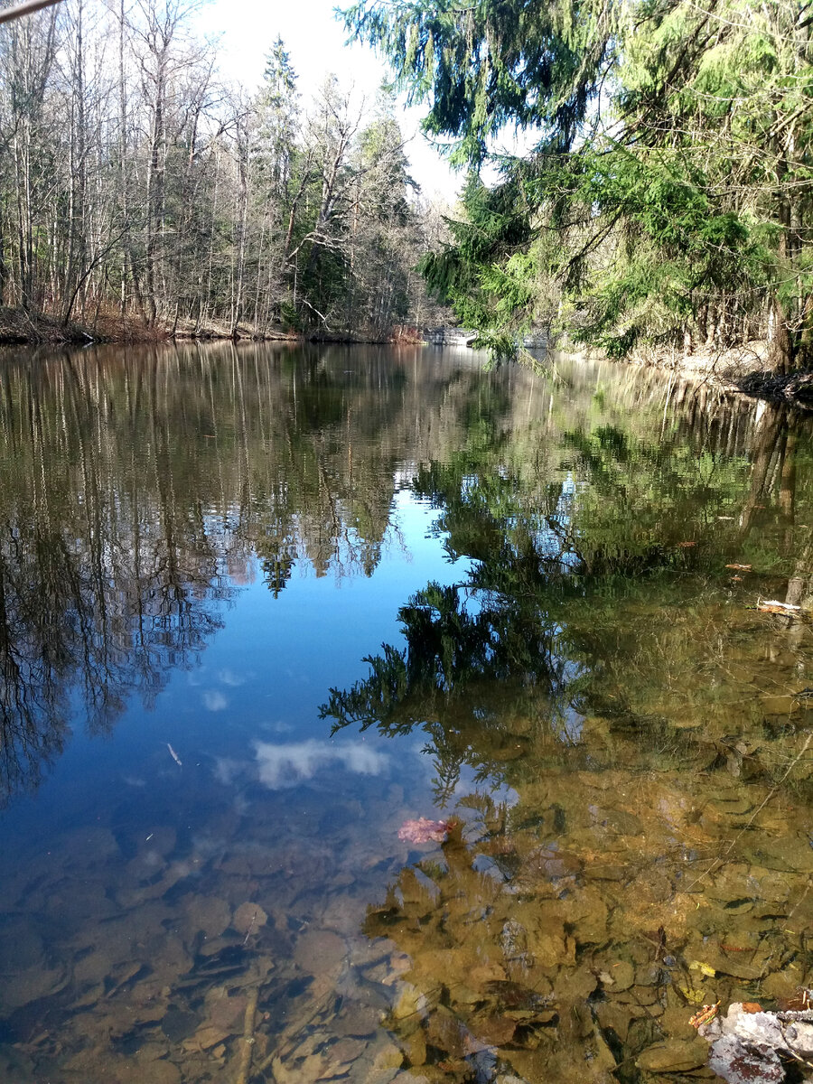 А вот и Кристателевый пруд, названный так от имени речки. Здесь летом пляж, можно позагорать и наверное при желании искупаться.