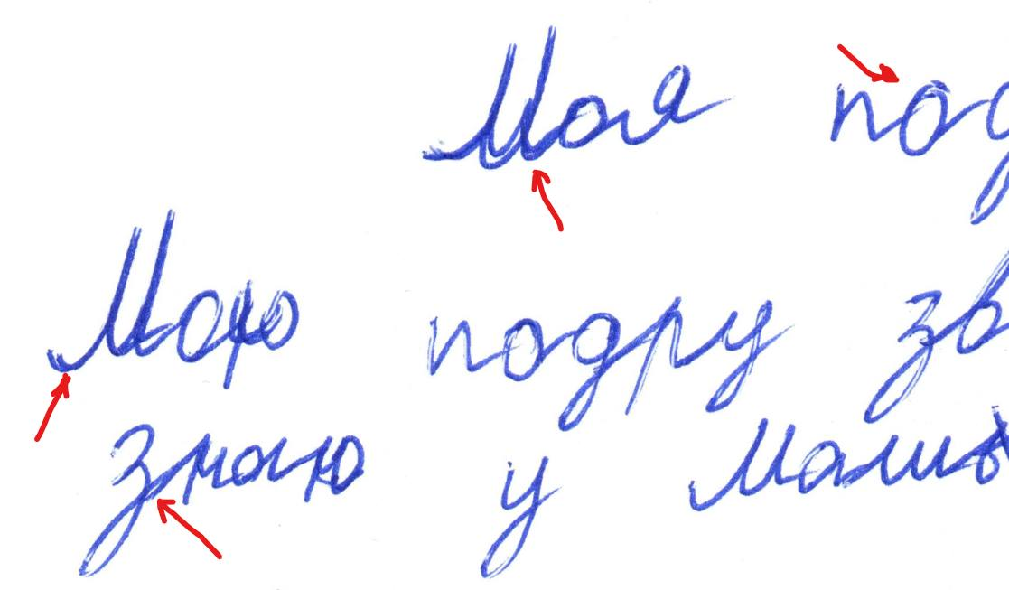 Давно я не делала разборы. Сейчас я занимаюсь детскими почерками. Как ни казалось бы странным, такие почерки тоже очень информативны. Вот пример почерка девочки 8 лет и 7 месяцев. Что в этом почерке бросается в глаза? Несмотря на возраст, почерк очень жесткий с углами, спазмами. А штрих очень не благополучный, окончания штрихов (выпуск) - резкий. Много агрессии, тревожности, которые препятствуют благополучной адаптации. Это подтверждается и тестом Вартегга. Обратите внимание на квадраты теста номер 5 и 7. Эти квадраты наиболее интенсивно закрашены, на них акцент. В квадрате 5 - молот, очень тяжелый и грубый инструмент, не характерный для девочки. Интерпретацией как раз является повышенная агрессия, жесткость при решении своих задач. Квадрат 7 - зачерненная лужа. Этот квадрат стимулирует на отклик женственности, чувственности. А ребенок огрубил стимул, все зачернил. Это говорит о том, что девочка не допускает нормальных эмоций, чувств, отвергает слабость. При разговоре с мамой под