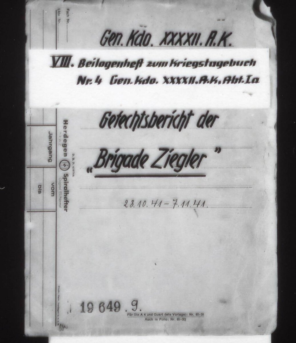 Что можно сказать о командующем 11-й армией? Врунишка. Почему? Да потому, что создать «временную бригаду» занятие хлопотное, и, главное, долгое, и, вообще… Это никакое не временное соединение. Это два мобильных отряда, которые с самого начала войны действовали в одном и том же составе. Состав двух моторизованных соединений был определен в дополнении к приказу №70 по 54-му армейскому корпусу еще от 13.10.41г., и к 27.10 почти не изменился. Отличия в их составе 27.10 наблюдаются совсем незначительные. Единственное, что в этой «схеме» было нового, так это «Штаб оберста (полковника) Циглера», сформированный из офицеров 42-го армейского корпуса, с приданной ротой связи (из штаба того же корпуса), которые координировали совместное движение двух отрядов. Каких?