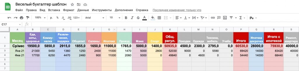 Такое жизнерадостное название закрепилось за гугл-таблицей, в которой я учитываю расходы, доходы, активы и долги. Я создала ее примерно в 2017 году и с тех пор постоянно дополняю и улучшаю. В ней формулы, которые считают среднее значение там, где нужно среднее, и суммарное — там, где нужно суммарное.