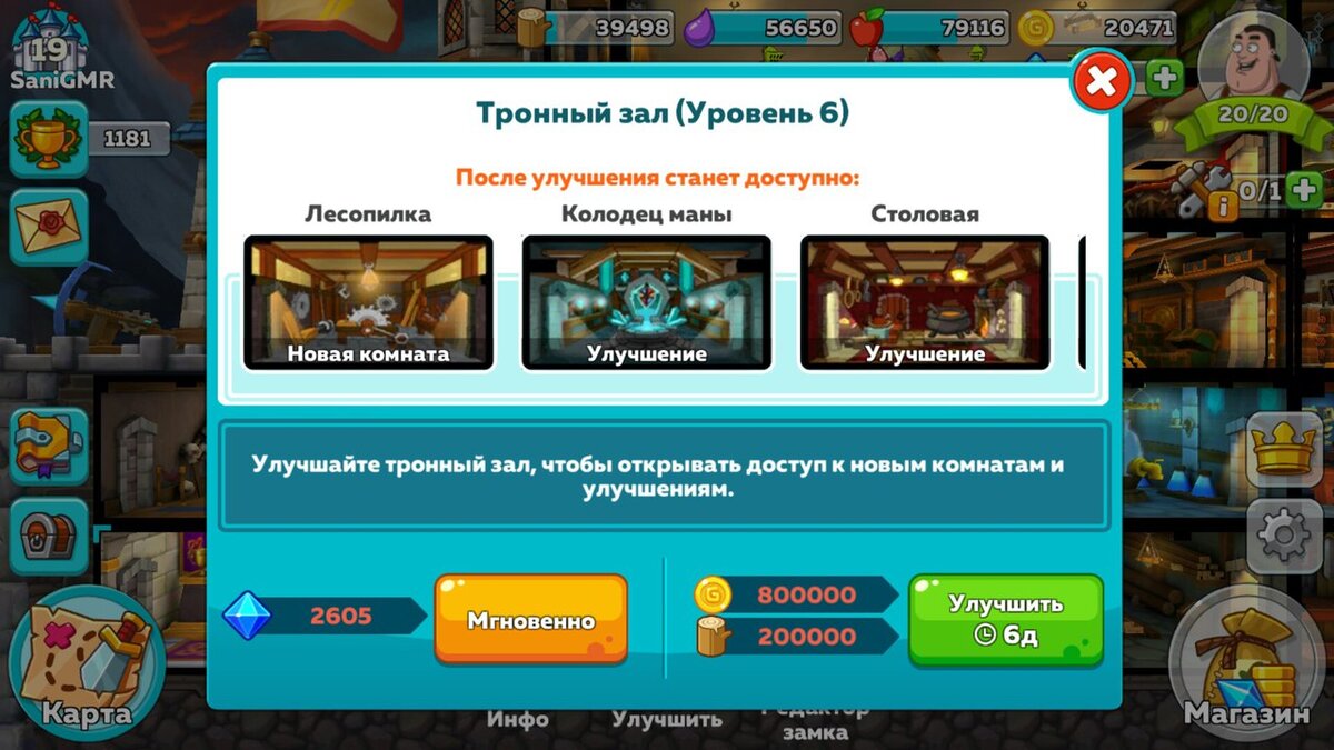 Приветствую всех на этой статье. Меня зовут Дмитрий. Мой ник в игре - Fanllik, являюсь участником клана Легион. Если вы зашли сюда, то я думаю, что вы как и я играете в игру Hustle Castle или собираетесь начать. Сегодня я подробнее расскажу о комнатах, о их постройке и улучшении. Помещения замка, предназначенные для различных нужд, станут доступны вам далеко не все и не сразу. Чем дальше вы продвинулись в игре, тем дороже будет стоить покупка новых и развитие старых комнат. Покупать их нужно в магазине (значок с мешком в правом нижнем углу экрана). Разблокировать возможность постройки вам предстоит, повышая уровень тронного зала. Число одновременно строящихся/улучшающихся комнат ограничивается числом нанятых строителей (по умолчанию строитель всего один). Выбирать вам нужно только порядок строительства — в итоге будут построены все без исключения доступные помещения. Иногда вы будете получать задания на улучшение определенных комнат, но все же старайтесь определять собственные приорите