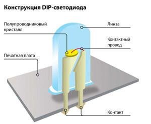 Светодиоды в DIP корпусе относятся к слаботочным, используется в подсветке, системах индикации и гирляндах.