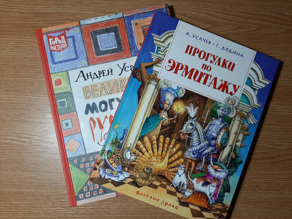Андрей Усачев уверенно входит в нашу(семейную) тройку лучших детских писателей, наряду с Софьей Прокофьевой и её терапевтическими сказками. "Умная собачка Соня", "Малуся и Рогопед" долгое время были у нам фаворитами. Ребёнок хохотал над проделками собачки Сони, грустил вместе с ней в неприятных ситуациях. "Малуся и Рогопед" неплохо развивает речь, познавательная, весёлая. Учит дружбе, сплоченности и взаимовыручке. Недавно приобрела ещё две книги Усачева. Первая - "Великий могучий русский язык". Это книга фразеологических оборотов для детей любого возраста. Своего рода словарь крылатых фраз. Замечательные стихи автора с использованием фразеологизмов заинтересовали у нас и школьника, и дошкольника. И стоит отметить яркие и живые иллюстрации Е. В. Станиковой. Вторая книга -"Путешествие по Эрмитажу" настоящее сокровище. Представьте себе, что вы гуляете с ребёнком по роскошному Эрмитажу, рассматриваете произведения искусства, а грамотный экскурсовод адаптирует весёлые стихотворные ис
