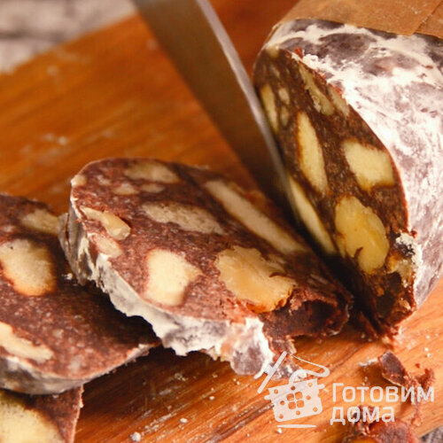 Для десерта подойдет любое песочное печенье. Но больше всего я люблю готовить колбаску из печенья со вкусом топленого молока. Добавляю 100 г грецких орехов.