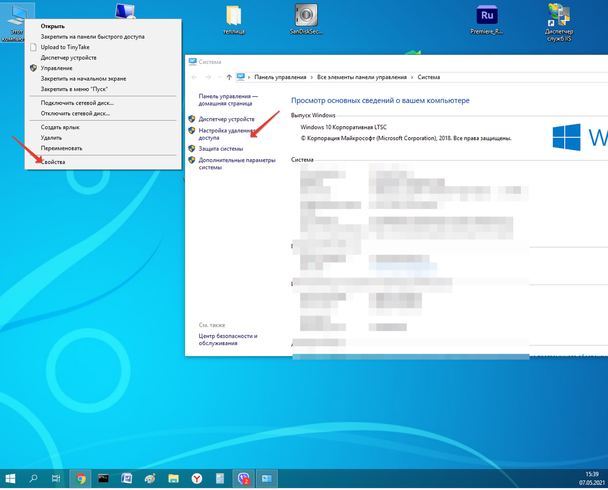 Нажмите правой кнопкой мышки на <<этот компьютер>>, затем переедите в свойства, где необходимо нажать на пункт <<настойка удаленного доступа>> Поставите кружок против <<разрешить удаленные подключения к этому компьютеру>> и нажмите <<применить>>, затем <<ок>>.