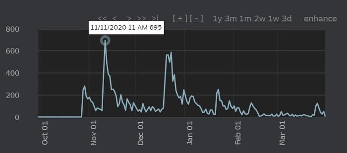 Итак, начнем с статистики. Самый прибыльной площадкой стал Steam. За полгода мы заработали чуть больше 17 000 $ (почти 50% из этой суммы бессовестно забрал Гейб и налоговые службы) , из которых большая часть пришлась на короткий промежуток после релиза и на новогоднюю распродажу. Может быть кто-то из наших читателей помнит, что изначально проект планировался как мобильная игра, но столкнувшись с реалиями мобильного рынка мы быстро переобулись и выпустились в Steam. И это было супер правильное решение. Результаты продаж в GooglePlay и Appstore скромные: 2500 $ за весь период в Google и меньше 2000 $ в Appstore. Поч