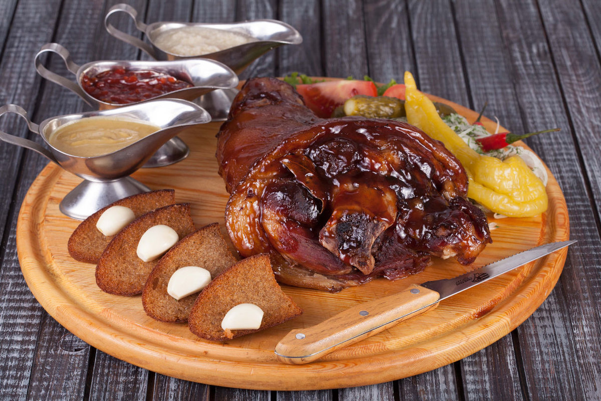 Печено вепрево колено (запеченная свиная рулька в пиве) - традиционное блюдо чешской кухни. Рулька готовится и запекается целиком до красивой румяной корочки. Суп-гуляш. Бренд принадлежит чешской кухне. У еще теплого свежеиспеченного серого хлеба срезать верхушку в виде крышечки. Вынуть мякоть так, чтобы стенки “сосуда” были толщиной не менее 8 см. Налить внутрь суп: достаточно густой, чтобы не вытекал. Блюдо несколько минут запекают в духовке, предварительно посыпав сверху сыром. Гуляш с кнедликами.Обычно его готовят из говядины, свинины или дичи. В качестве специй используют чёрный и душистый перец, тмин, можжевельник, лавровый лист, острый перец чили. Густоту блюду придают: мелко нарезанный хлеб, картофельный или кукурузный крахмал, мука.Сопровождают кнедликами или хлебом, а также сырым луком или натёртым хреном. В домашних условиях традиционно подаётся в горшочках.
