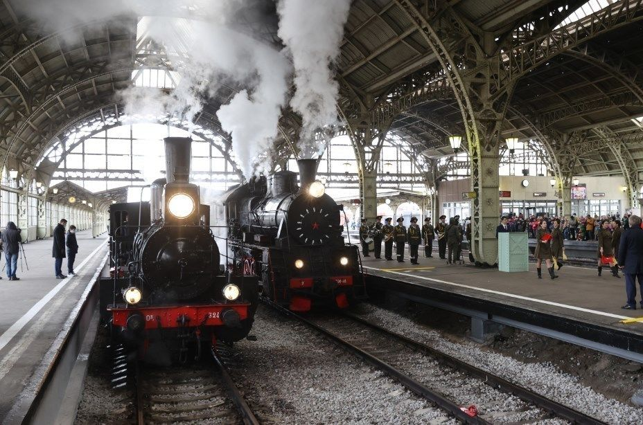 На Витебском вокзале прошел парад паровозов в честь 76-летия победы в Великой Отечественной войне.