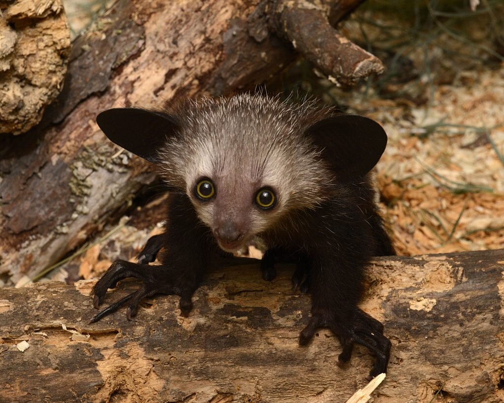 Руконожка находится под угрозой исчезновения . Уменьшение численности обусловлено уничтожением лесов, в которых обитают руконожки. Охраняются законом, но охрана малоэффективна. Весит зверёк примерно 3 кг. Его стройное, длиной около 36—44 см, тельце покрыто жёсткой прямой тёмно-бурой или чёрной шерстью с густым подшёрстком. Пушистый хвост достигает в длину 60 см. Большая округлая голова с укороченным лицевым отделом украшена крупными глазами и огромными безволосыми ложковидными ушами. Зубы руконожки напоминают зубы грызунов. Резцы очень крупные, изогнутые и отделены от коренных значительным промежутком. Клыки после смены молочных зубов не сохраняются, зато резцы продолжают расти в течение всей жизни животного. Передние конечности короче задних, пальцы снабжены очень длинными и несколько согнутыми ногтями. Вследствие этого ай-ай ходит весьма медленно. На среднем пальце руки два последних сустава среднего пальца — длинные, тонкие и не покрыты волосами. Руконожка пользуется этим пальцем, ч