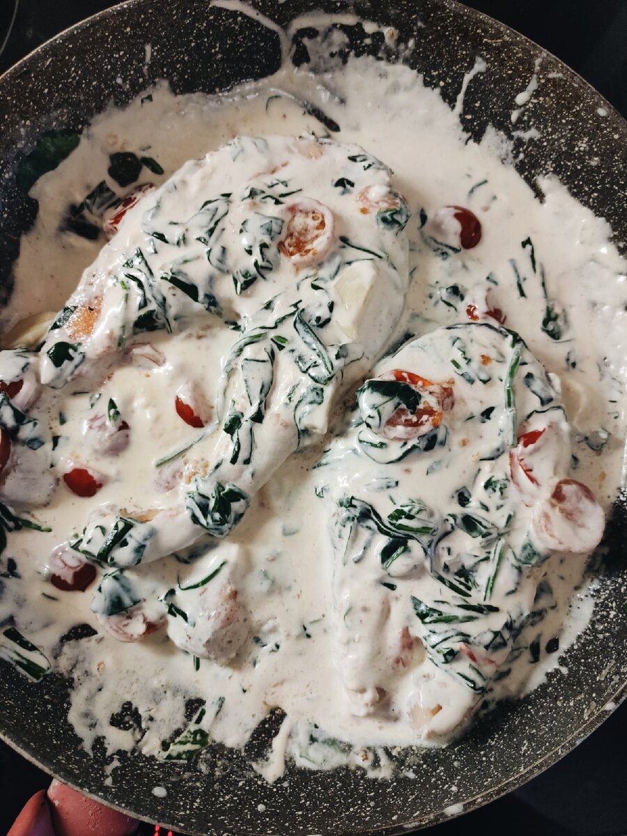 Это наверно самая вкусная и нежная семга, которую я готовила! В начале все ваши рецепторы в буквальном смысле атакует солоноватый сливочный соус, затем вы чувствуете нежнейшую рыбу, которая окутывает вас и незаметно тает во рту, заставляя повторять всё снова и снова! Я думаю, если аккуратно оформить блюдо на красивой тарелке, то однозначно вы почувствуете себя в ресторане высокого уровня! Да, вот так покорил меня этот рецепт. Хоть у меня в арсенале лежит уже много лет мой фирменный рецепт стейка семги (и он определенно хорош), но вот этот запал мне прямо в сердце! Даже фото не успела красивое сделать, тут же тарелка осталась пустой! Так что БЕГОМ за свежей рыбкой и организовывайте себе незабываемый ужин. И скидывайте мне свои красивые фотографии! Ингредиенты (пишу примерно, делайте как говорится, "на глаз"): Приготовление: 1. Быстро на сильном огне обжариваем рыбу с двух сторон. Выкладываем на тарелку. 2. В эту же сковородку кидаем помидоры черри (порезанные пополам), шпинат (тоже пор