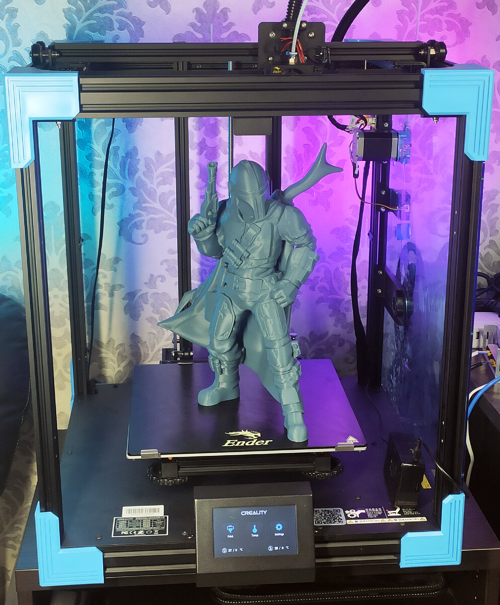 Привет друзья! В этой статье речь пойдет о настройке 3D-принтера Ender-6 от Creality. А еще напечатаем маленькие и очень большие модели. Всё о сборке и распаковке читайте в первой части. Итак, принтер собран и включен. Загружается за 10 секунд. В разделе информации можно узнать версию прошивки и область печати. Чтобы проверить работу всех моторов и концевиков, отправляем принтер в Auto home. Для настройки уровня стола нужно гонять сопло по 5 точкам и подкручивать гайки так, чтобы сопло цепляло лист бумами, но не прижимало его. И тут я столкнулся с неприятностью, ролики принтера катаются прямо по верхнему профилю, поэтому на него нельзя облокачиваться. На корпусе есть даже предупреждающая наклейка «Keep hands away from moving parts» в переводе на русский означает «Не суй». Поэтому не нужно держаться за верхнюю раму. Включаем нагрев сопла и заправляем пластик. Теперь настраиваем принтер в слайсере. Я использую вот такой профиль для Ender-6. И запускаем тестовую печать, как обычно первы