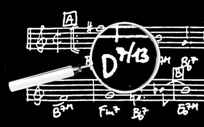 Последнее обозначение — это многоэтажные аккорды. Дроби используются для обозначения обращений — например С7/B♭ и политональных аккордов — A/B.