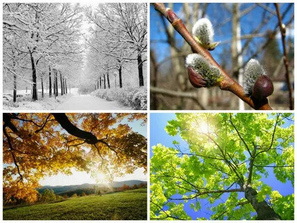 9) Зима, весна, лето, осень - что это? Времена года. Весна: тает снег, прилетают птицы, из спячки просыпаются животные, появляются почки на деревьях, деревья цветут, потом появляются зеленые листики. Лето: ассоциируется с солнцем, теплом, мало одежды, море, поездка к бабушке, созревают фрукты и ягоды, цветы, бабочки. День длинный, а ночь короткая, детки долго гуляют на улице. Осень: листья желтеют, опадают, деревья становятся «голыми». На улице дождь и ветер, птицы улетают на юг. Сбор урожая, зонт и резиновые сапоги. Зима: это, конечно, белый снег, холодно. Люди одеваются теплей, шапки, шубы, шарфы, перчатки. Дети катаются на санках, с горки, на лыжах и коньках, играют в снежки, лепят снеговика.