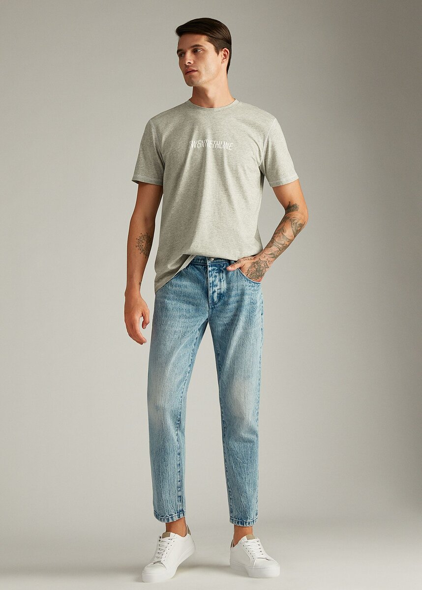 Знаете, первые брюки из Денима были выпущены 20 мая 1873 года. Скоро джинсам исполнится 148 лет. Первая в мире пара была куплена за 1,46$. Почему сегодня они еще популярнее, чем раньше? Они универсальны. Мода на разные модели джинсов меняется. Количество выпущенных товаров растет и становится все больше. Джинсы есть практически у каждого жителя планеты Земля! Только в США каждый год продается около 450 млн пар джинсов. Традиционные цвета - синий, черный, голубой, но сегодня много разных вариантов. В этой статье представлены модели в разных оттенках, вы непременно найдете свой! Секрет Денима заключается в особенном переплетении нитей: внешние волокна прокрашены, а внутренние нет. Именно эта специфика материи удобна для того, чтобы менять оттенки и достигать эффекта старины. Настоящая городская классика - зауженные серые джинсы с потертостями. Застежка на пуговицу и молнию, скрытую планкой, пять карманов, шлевки для ремня. Состав: хлопок - 99%, спандекс - 1%. Одну из этих моделей или