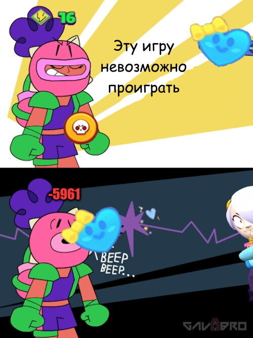 Привет это пятая подборка мемов по бравл старс! Погнали к мемам! 1) Когда остался один на один с Коллет: 2) 3) 6 причин, по которым боты лучше обычный игроков... 4) Единственный нажал играть ещё: 4) Единственный нажал играть ещё: 6) Именно для моих кривых рук придумали пассивку на Беа: 7) Это так не работает: 8) Она и правда быстрая 9) *Мем от подписчика* Герман Кунцман 10) Я на дистанционке: Присмотритесь получше!