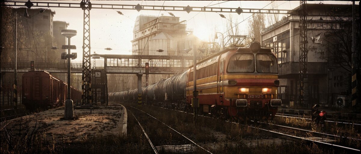 Дым, пар, огни прожекторов и фонарей. Казалось, что я слышу звуки завода. Тяжёлые металлические фабричные звуки. По-моему, они действительно доносились до поезда и пробивались через стекло окна. Так мы стояли почти полчаса.