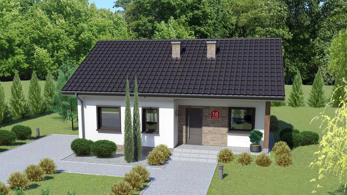 В этой публикации предлагаю обсудить дом, площадью 65 м2. По просьбам читателей своего канала нашёл на одном европейском сайте вот такую красоту. Были пожелания опубликовать проект дома для двоих. Спрос на такие дома есть. За свою строительную историю я не раз реализовывал проекты, подобные этому. Заказчики- бездетные семейные пары, или пары в серьёзном возрасте. Дом исполнен в современном стиле. Выразительность архитектуры достигается цветовой гаммой на фасадах. Белая штукатурка, дерево, кровля графитового цвета, всегда смотрится беспроигрышно. Крыльцо вырезано из общего объёма здания, что позволило применить простую двускатную кровлю без дополнительных козырьков и навесов над входом. Поэтому композиция лаконичная и законченная. На 65 м2., архитектору удалось разместить необходимые помещения для постоянного проживания двух человек. И даже есть гостевая спальня или кабинет. Нет нужды описывать планировку, всё прекрасно видно. У меня есть принципиальное замечание по котельной. Всё те ж