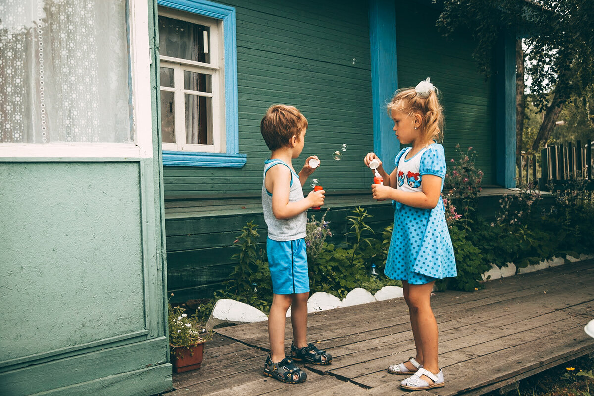 На улице ярко светила луна. Было светло, как днём. Ночи то летом короткие. Потихоньку приоткрыли ставню у них в зале. На двух больших булавках закрепили картошку с длинной верёвочкой. Верёвочку до смородиновых кустов у дома соседей натянули. Надели козлиную и волчью маски, натянули на себя цветные простыни и пошли к спальному окну соседей. Открыли ставни, поскреблись в окно. Тетя Стеша, отодвинув штору, прилипла носом к окну. Тут то мы и заорали по козлиному, размахивая руками. Она отпрянула в страхе. Слышим дядя Степан матюкается. Мы бежать. Простыни сняли, скомкали и в наш палисадник под сирень юркнули. Лежим не дышим. Колька, их сын, выскочил в трусах на босу ногу, побегал по улице и вернулся в свой дом.